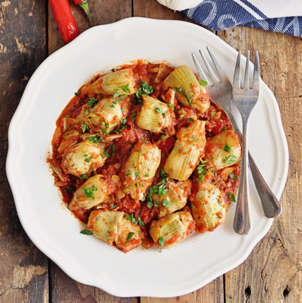 Αγκινάρες με σάλτσα Ναπολιτάνα.