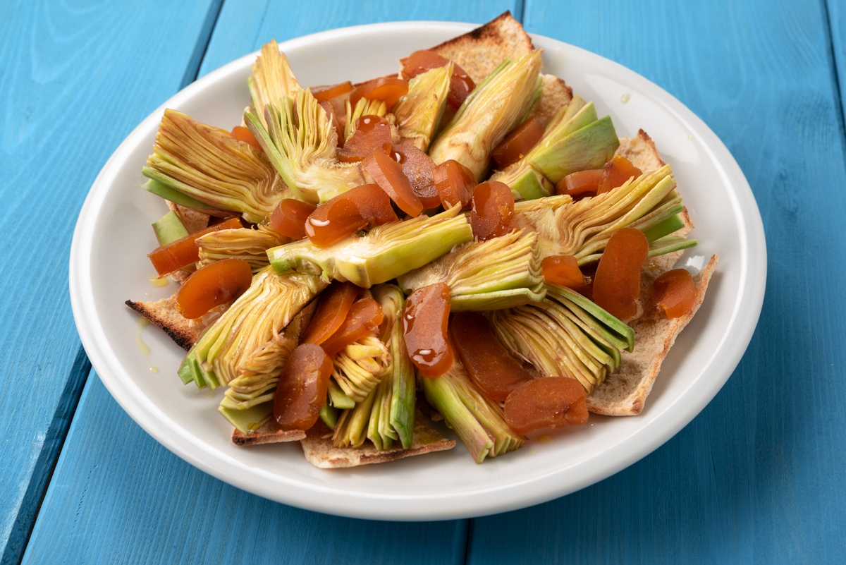 Αγκινάρες σαλάτα με αυγοτάραχο Μεσολογγίου.