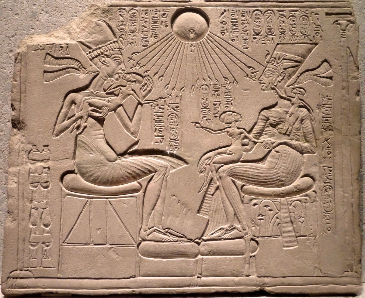 Είναι ο μοναδικός Φαραώ που απεικονίζεται σε κόσμημα αγκαλιά με την γυναίκα του. Η Νεφερτίτη άλλωστε επηρέαζε την τέχνη της εποχής της, στήριζε τον Φαραώ στην θρησκευτική του μεταρρύθμιση κι έφερε αναστάτωση στις ως τότε κρατούσες παραδόσεις. Στις δημόσιες εμφανίσεις, κρατούσε τον βασιλιά από το χέρι, ενώ γύρω από τον θρόνο, το κοριτσομάνι έπαιζε αμέριμνο. Το όνομά της σήμαινε «η αγαπημένη που έρχεται». Ήταν κι αυτή μια πριγκίπισσα των Μιτάνι που παντρεύτηκε τον Φαραώ στα πλαίσια της λογικής της διατήρησης της ειρήνης. Παρά τα προξενιά και τις σκοπιμότητες, ο έρωτας ανάμεσά τους επήλθε κεραυνοβόλος.
