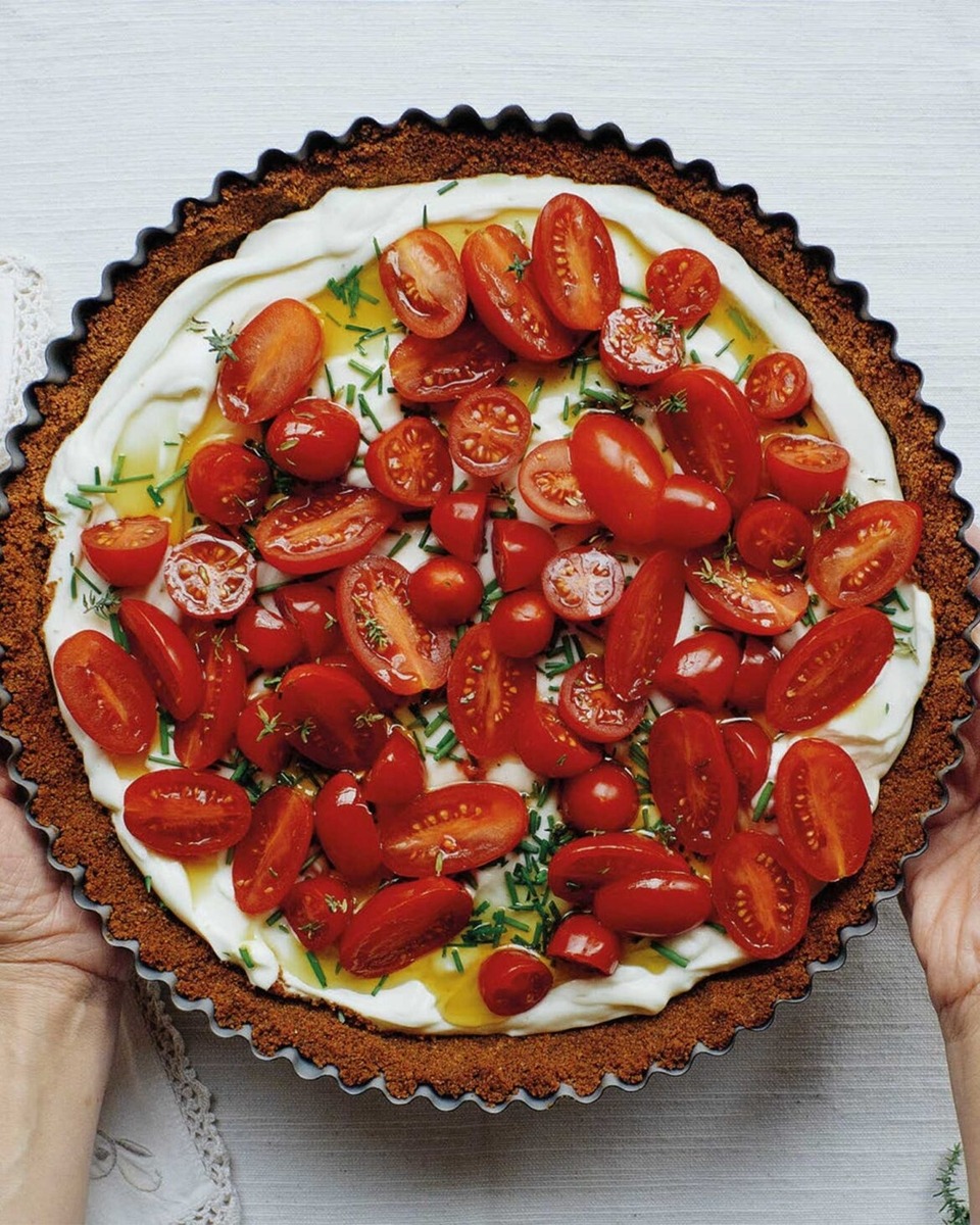 Κρύα τάρτα με κρέμα Roquefort, ντοματίνια, τυριά και βάση παξιμαδιού