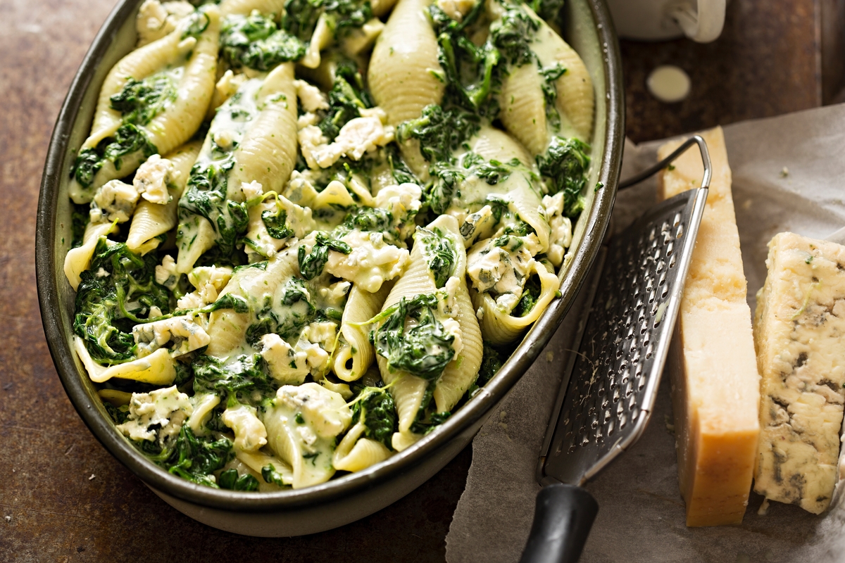 Κοχύλια με Gorgonzola & σπανάκι.