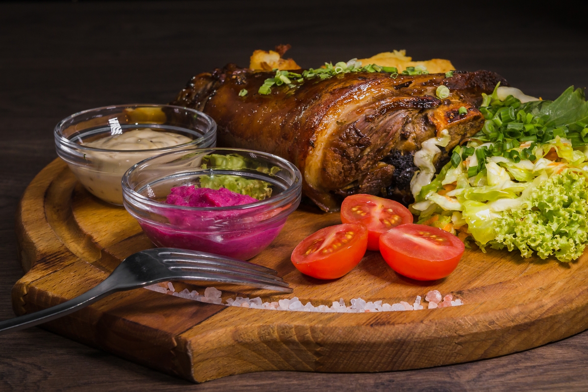 Χοιρινό κότσι μελωμένο, με μουστάρδα και πορτοκάλι!