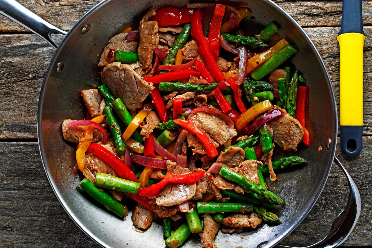 Κλασσική κι Ένδοξη τηγανιά χοιρινού με χρωματιστές πιπεριές