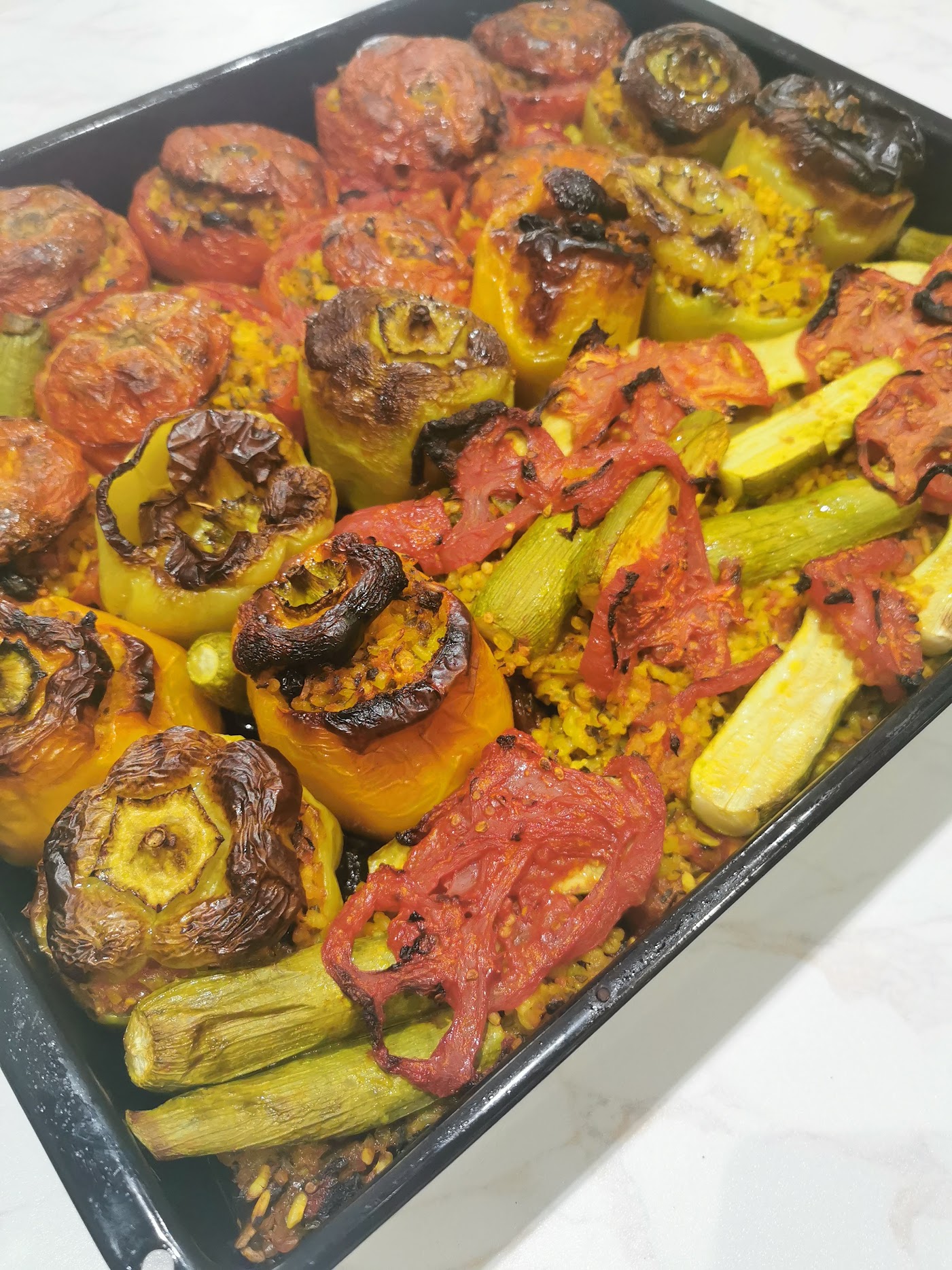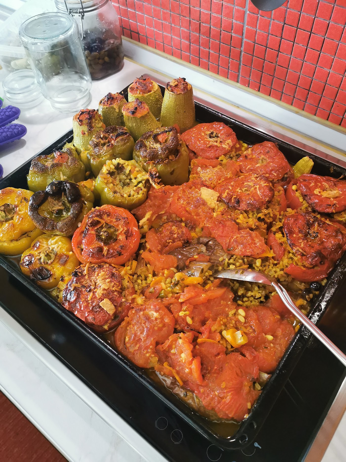 Ντομάτες Κολοκύθια, Πιπεριές, γεμιστά με κινόα και ρύζι.
