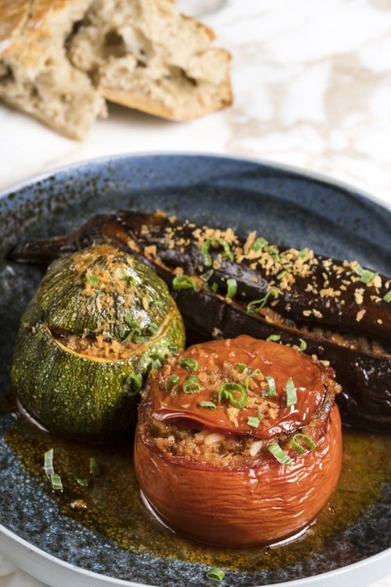 Ντομάτες Κολοκύθια, Πιπεριές, γεμιστά με αρωματικά, κινόα και ρύζι.
