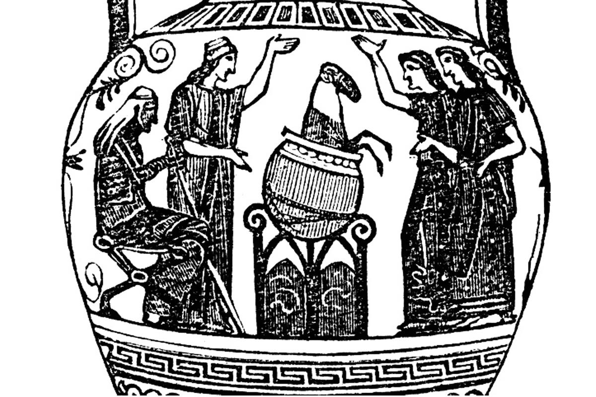Η χύτρα αναγέννησης της Μήδειας. Σκηνή από ερυθρόμορφο Ελληνικό αγγείο του 470 π.κ.ε. περίπου,