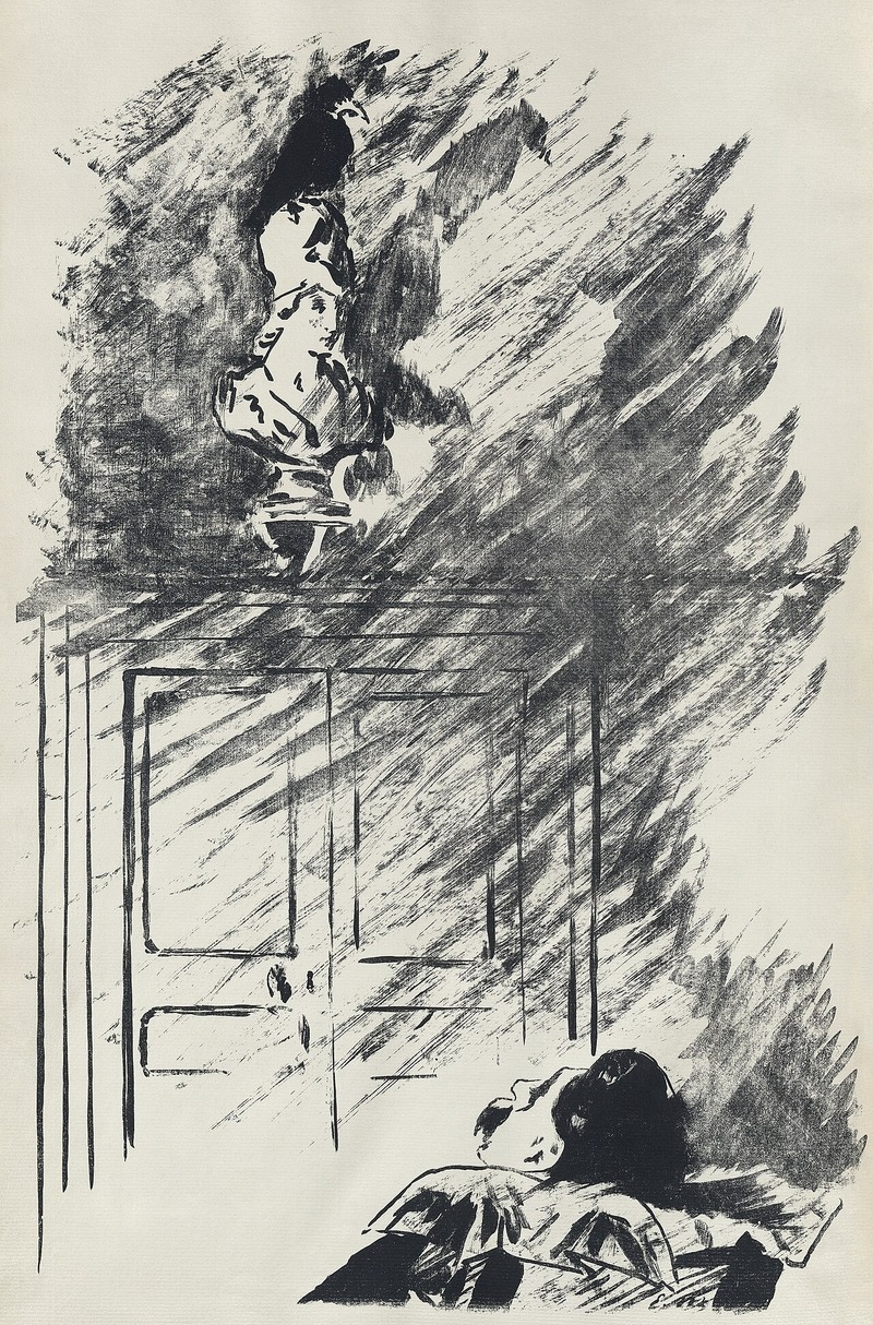 Εικονογράφηση του Πόε (1875) από τον Γάλλο ιμπρεσιονιστή Édouard Manet για την μετάφραση του Stéphane Mallarmé του “The Raven”