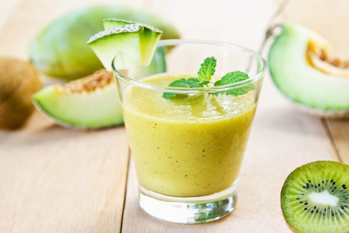 Smoothie με πεπόνι, τζίντζερ κι ακτινίδιο.