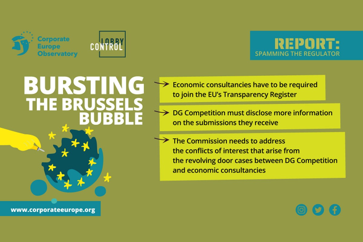 Μια ελάχιστα γνωστή εταιρεία οικονομικών συμβούλων προσλήφθηκε από την Ευρωπαϊκή Επιτροπή για να αξιολογήσει τους κανόνες της περί συγχωνεύσεων.Οι έρευνες που έγιναν από το Corporate Europe Observatory και το LobbyControl δείχνουν ότι η Ευρωπαϊκή Επιτροπή μετά βίας έχει διερευνήσει εάν υπάρχει σύγκρουση συμφερόντων σε μία τέτοια ανάθεση, αγνοώντας τις συστάσεις του Διαμεσολαβητή της ΕΕ.