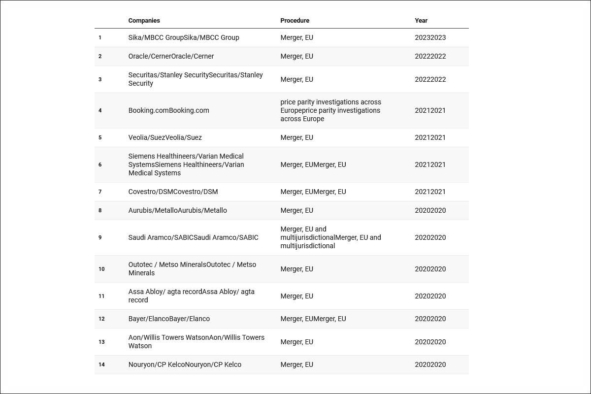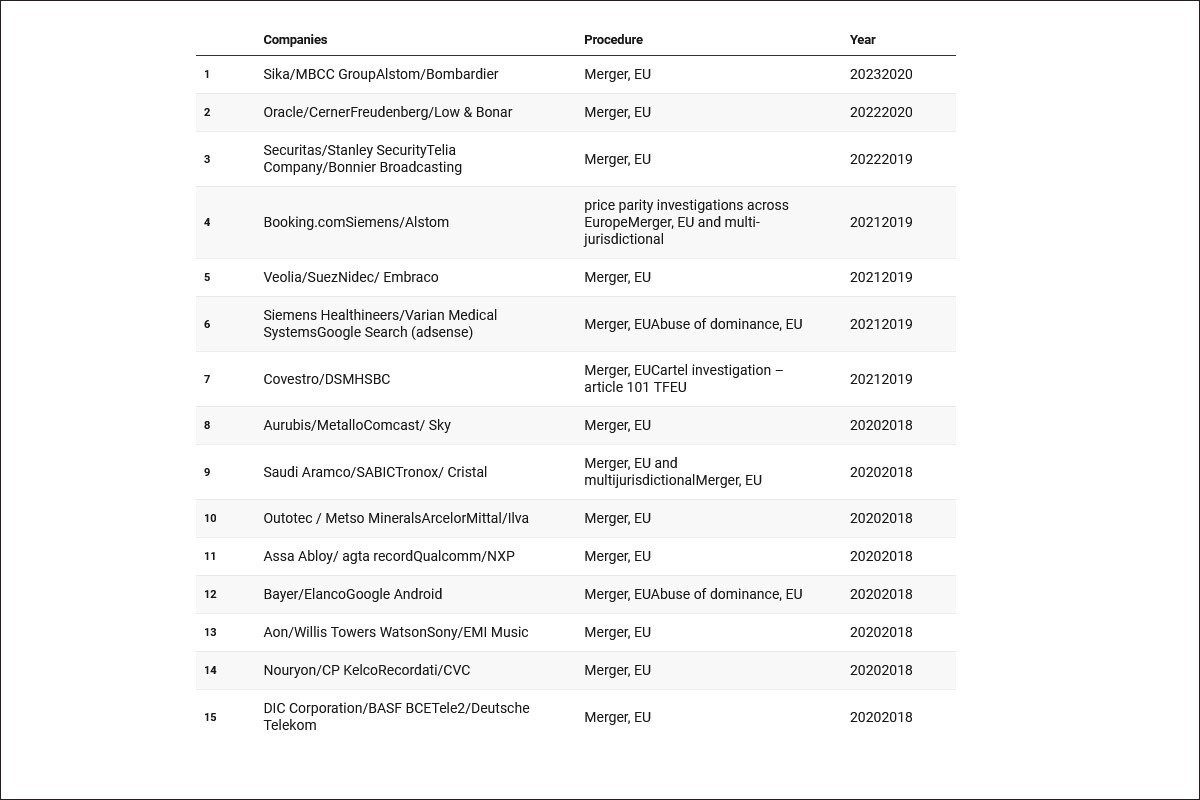 Οι αριθμοί της Ευρωπαϊκής Επιτροπής δείχνουν ότι μεταξύ 1990 και 2021, μόνο 30 από τις 8083 κοινοποιηθείσες συγχωνεύσεις μπλοκαρίστηκαν από την ΕΕ, ποσοστό μόλις 0,37%. Μια μελέτη που ανατέθηκε από το Παρατηρητήριο για την Εταιρική Ευρώπη δείχνει επιπλέον ότι η Ευρωπαϊκή Επιτροπή ενέκρινε 9 στις 10 κοινοποιηθείσες συγχωνεύσεις χωρίς όρους. Σε κανέναν άλλο τομέα αυτό δεν είναι πιο προφανές από τον τομέα της τεχνολογίας. Η Apple, η Microsoft, η Alphabet και η Amazon βρίσκονται όλες στις 5 μεγαλύτερες εταιρείες στον κόσμο με βάση την κεφαλαιοποίηση.