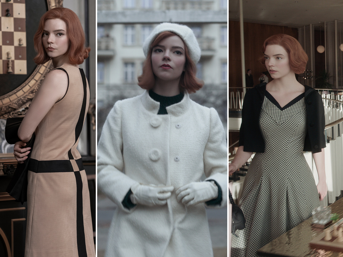 Στην πρώτη της εμφάνιση αφήνει πίσω την ποδιά του ορφανοτροφείου και γεννιέται η αγάπη της για τα φορέματα, όπως αυτό με τα τετράγωνα μοτίβα, που παραπέμπει σε σκακιέρα. Μια λεπτομέρεια για παρατηρητικούς θεατές και ένδειξη του ότι τίποτα σ’ αυτήν την σειρά δεν είναι τυχαίο, είναι οι χρωματικές επιλογές των ρούχων την πρωταγωνίστριας, όπου σχεδόν όλες στα χρώματα του σκακιού, άσπρο, μπεζ και μαύρο. Αριστουργηματικές επιλογές δε, αποτελούν τα σύνολα που βλέπουμε να φοράει στο τελευταίο επεισόδιο.