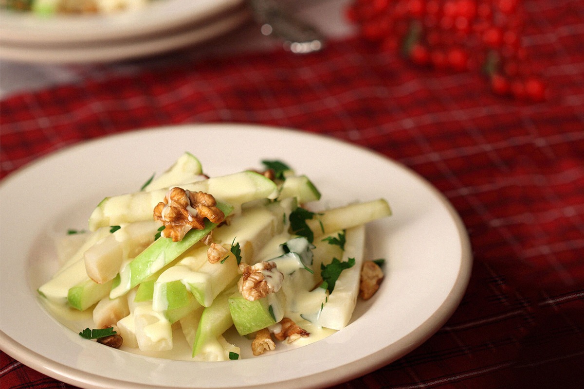 Κλασική αμερικανική σαλάτα, η οποία πρωτοπαρουσιάστηκε το 1893 στο ξενοδοχείο «Waldorf astoria», απ’ όπου πήρε και τ’ όνομά της.