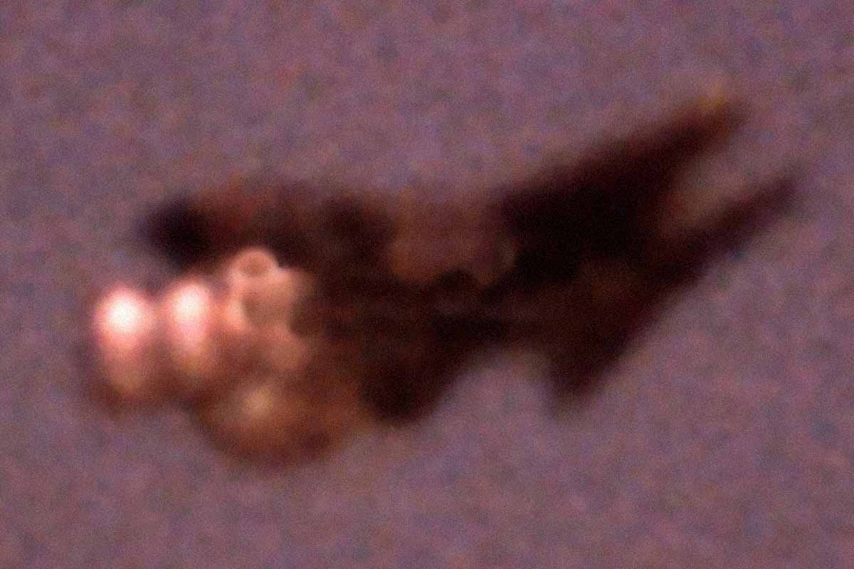 Πολλές φορές ενώ δεν φαίνονται αεροπλάνα πλημυρίζει πολύ γρήγορα ο ουρανός χημικά σύννεφα. Αυτό γίνεται γιατί τα UFO πετούν σε λειτουργία αορατότητας. Η φωτογραφία με το F15 και το UFO είναι του Ed Walters τραβηγμένη στις 13 Ιανουάριου του 1994, στην Pensacola των ΗΠΑ.